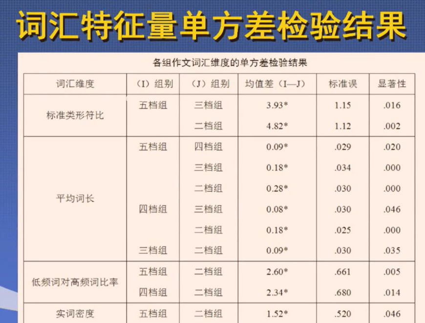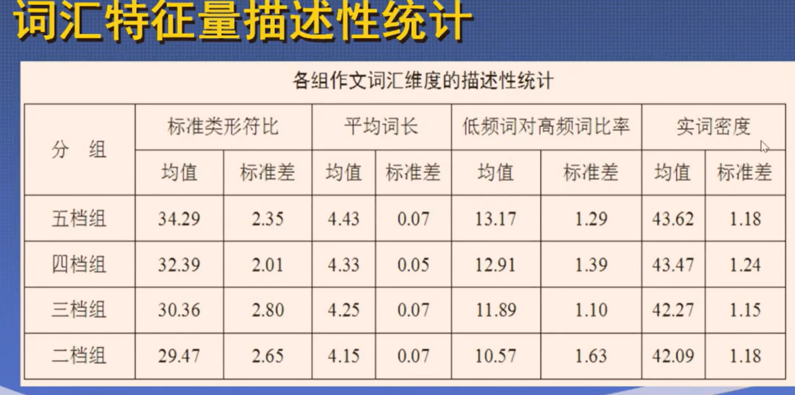 3.写作词汇,标准类型符比,平均词长,低频词对 高频词比率,实词密度,词汇使用情况的定量研究